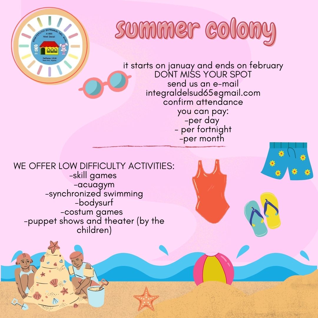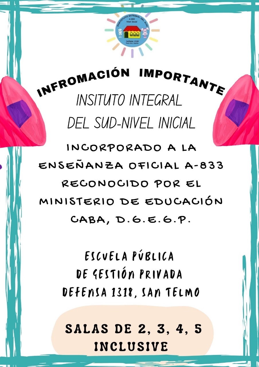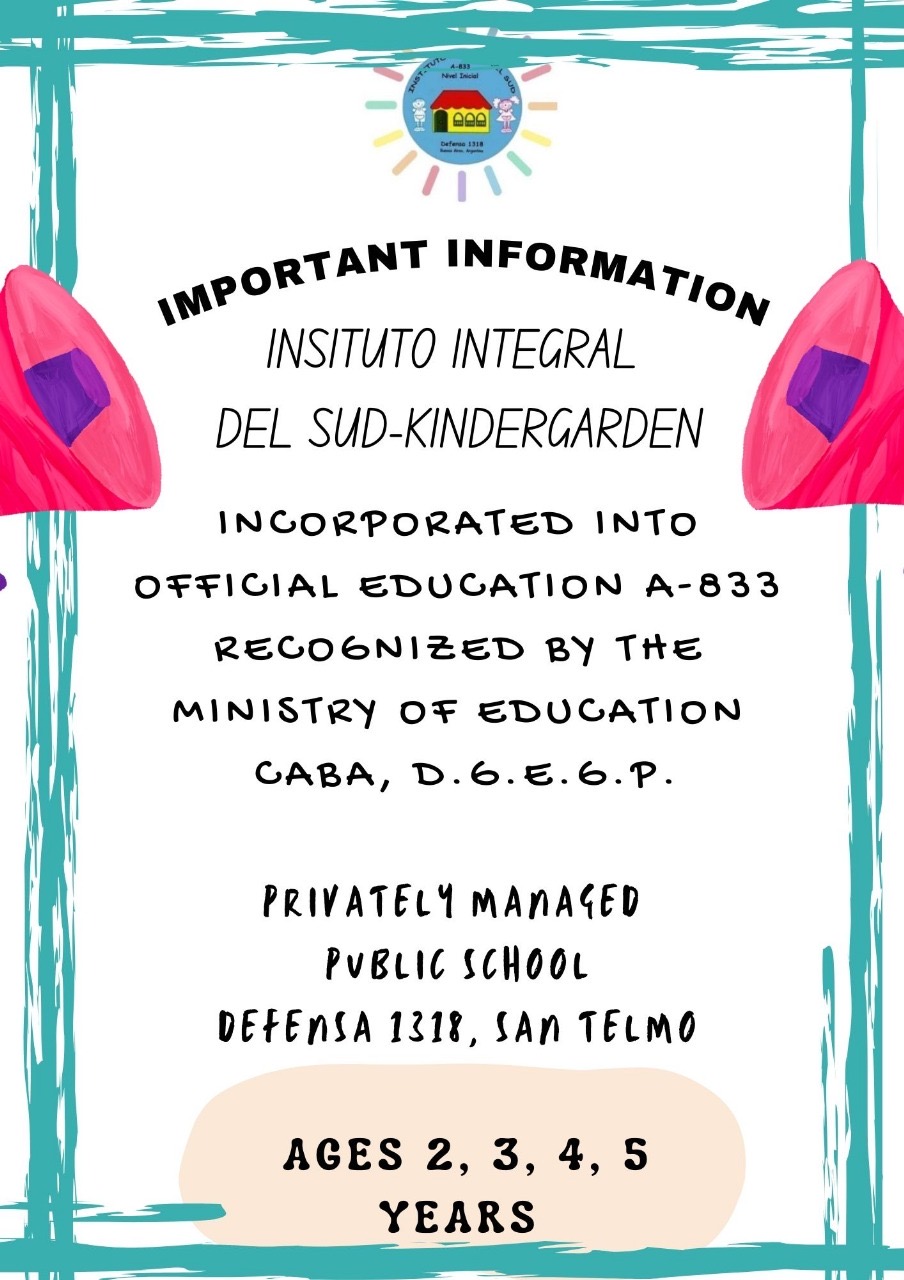 Ya esta abierta la inscripción para el curso escolar 2026. Para informes: Completar el siguiente link y comunicarse a integral_del_sud@yahoo.com.ar o al WhatsApp +11 5174 2229 / 47002348