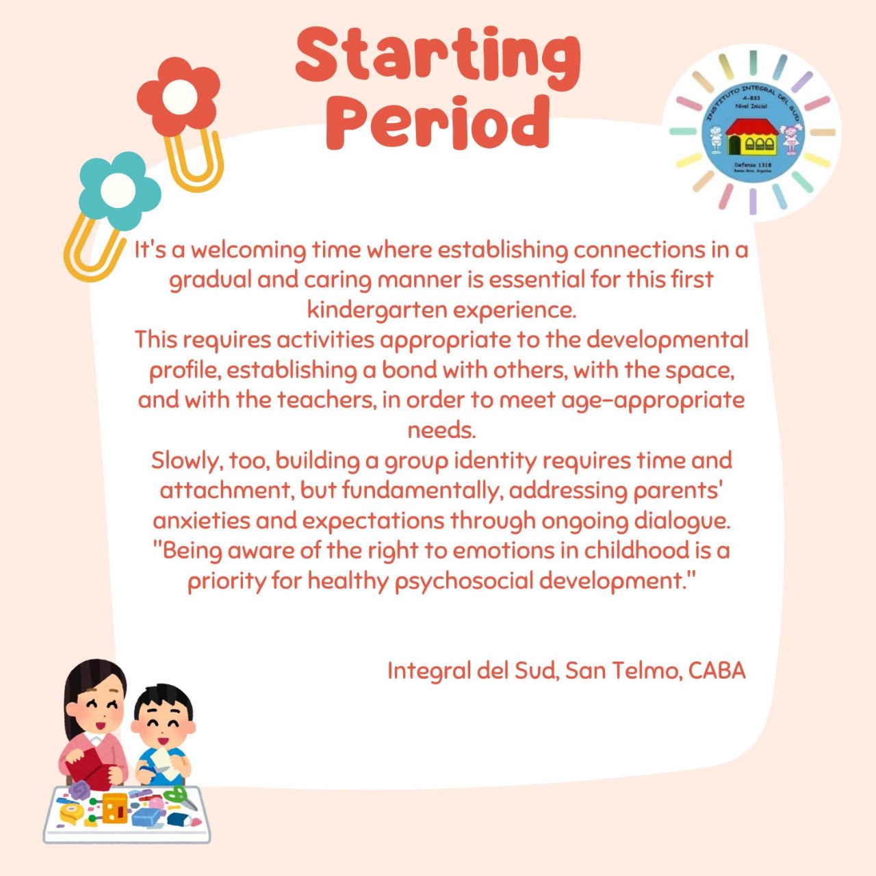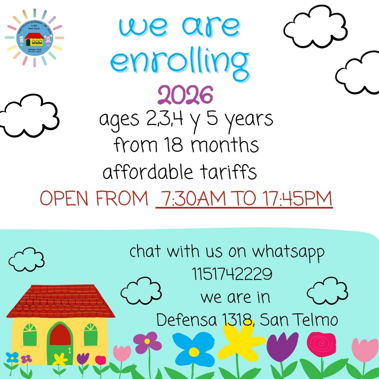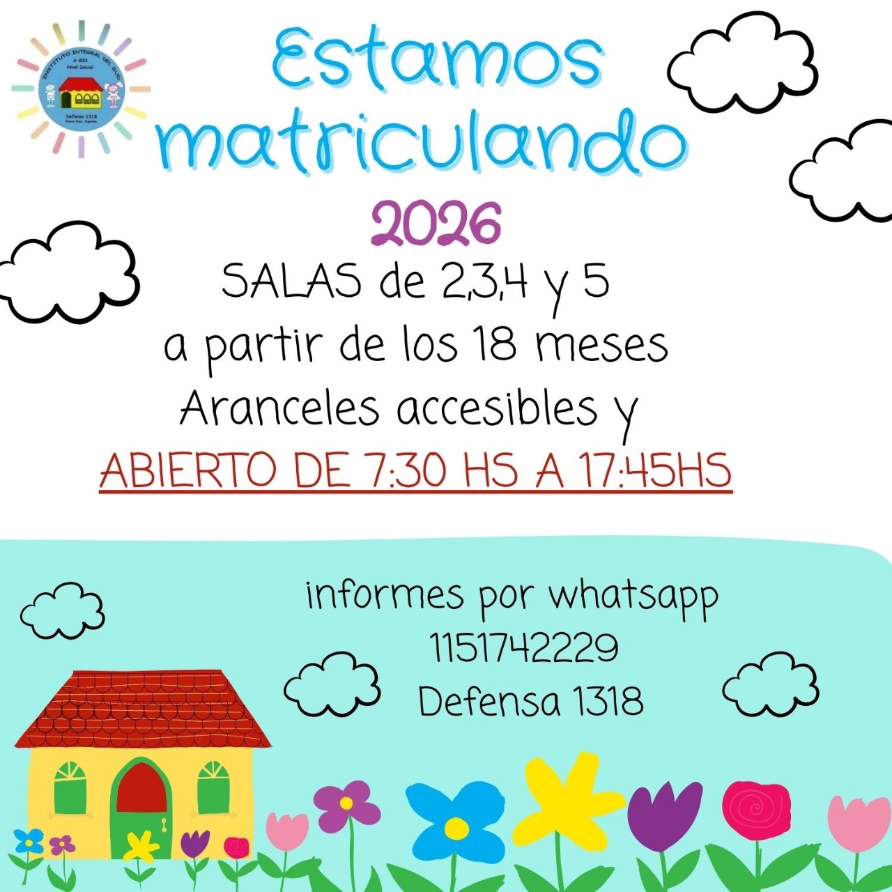 Ya esta abierta la inscripción para el curso escolar 2026. Para informes: Completar el siguiente link y comunicarse a integral_del_sud@yahoo.com.ar o al WhatsApp +11 5174 2229 / 47002348